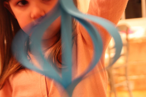 - Then, begin sticking the other end of strips, curving the paper to meet each end length. Fasten with a paper clip to hold until the glue has dried.